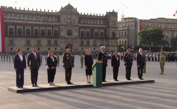 La presidenta Claudia Sheinbaum Pardo encabezó el izamiento de bandera a media asta en homenaje a las víctimas de los sismos del 19...